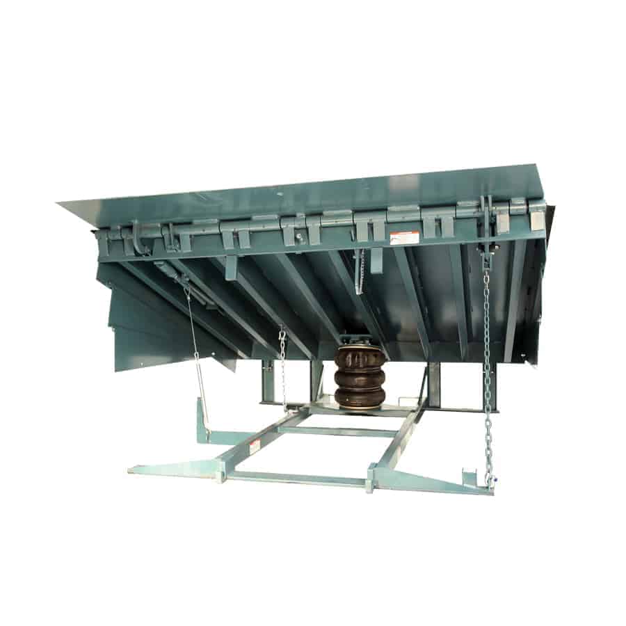 - Air-Powered Levelers Are an economical alternative to hydraulic levelers, but are still operated with a push-button activation. An air bag or bellows system is used to raise and lower the deck.