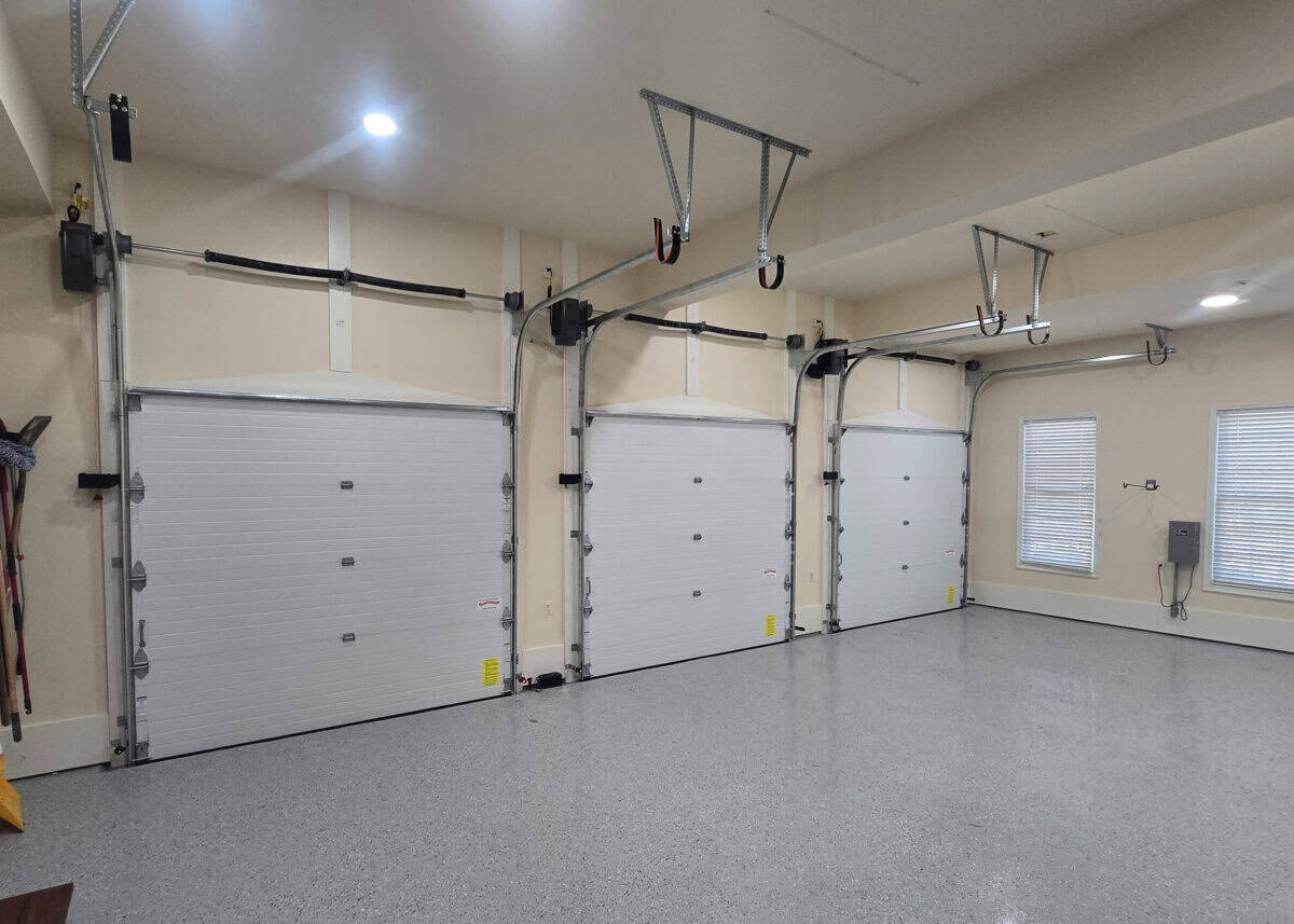 Each of the four doors utilized high lift track, maximizing clearance and storage space within the garage. To operate these doors, Overhead Door Infinity 2000 operators were installed. They were paired with our wireless wall consoles featuring a timer to close and an exterior universal wireless keypad.