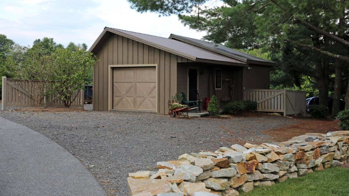 This detached garage features a garage door from Overhead Door™ Carriage House Collection. Garage doors from this collection are available in a wide array of stained and painted finishes, but this homeowner selected the Clay stained finish. An embossed wood-grain texture captures the look of a classic carriage house door. You can customize the appearance of these garage doors with windows and hardware for even greater curb appeal.