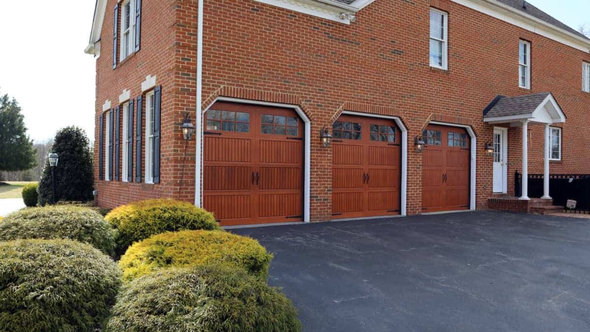 This fabulous home features three sophisticated looking garage doors from the Overhead Door™ Impression Collection. Our Impression Collection garage doors are constructed out of fiberglass which captures the finest wood-grain texture, but requires much less maintenance than natural wood. This homeowner chose our model 983, which features vertical slats, in a cherry stain finish. There are various decorative hardware options. Shown above are large spear handles and spear hinges. In order to operate these garage doors, three Odyssey® 1000′ electric openers were installed which are powerful, quiet and durable. One exterior keypad was also installed which can open any of the three doors from the outside. By choosing these garage doors, this homeowner has added a great deal of warmth and curb appeal to their home.