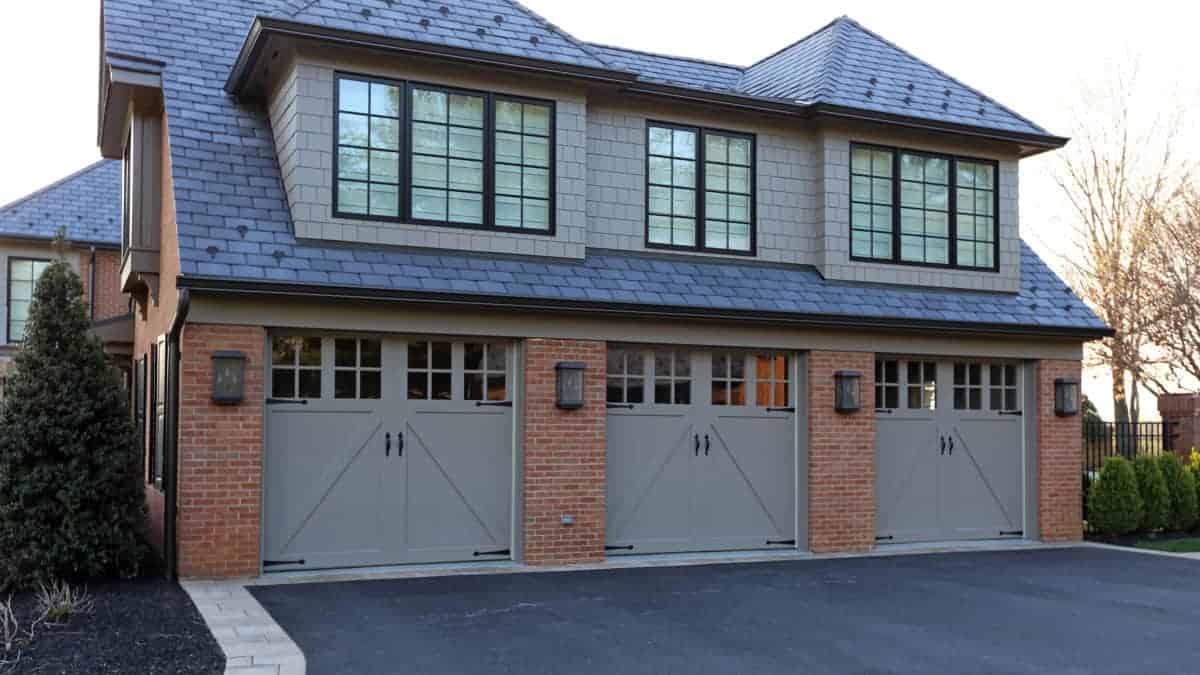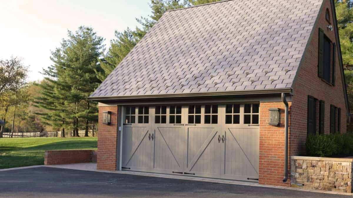 The residents at this beautiful home chose attractive custom wood Overhead Door™ Signature Carriage Garage Doors to finish off their recent remodeling project. These doors really made the difference on their detached garage and brought the whole courtyard together. The detached garage door measured 18 feet wide and weighed over 800+ lb. This large door functions with ease, perfectly balanced and operated by our powerful, yet quiet Destiny® 1500 Screw Drive Opener. Allowing for easy access from the exterior of the garages, wireless keypads were added. These painted custom wood doors compliment the warm tones in the roof, brick and stone and were the perfect finishing touch to this completed project.