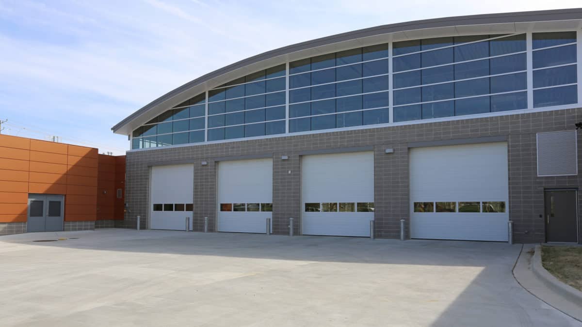 The Travilah Fire Station #32 in Rockville, MD chose to finish their newly constructed building with our Door Engineering Four-Fold Doors. These specialty doors provide the perfect solution for fire stations, offering eye catching aesthetics and unmatchable performance. The Four-Fold door moves horizontally rather than vertically. As a result, the door is visible throughout the opening motion allowing the driver to know the precise second the doorway is clear to exit. These Four-Fold Doors open in just 7 seconds and are constructed with components that are designed to perform over 1 million cycles!