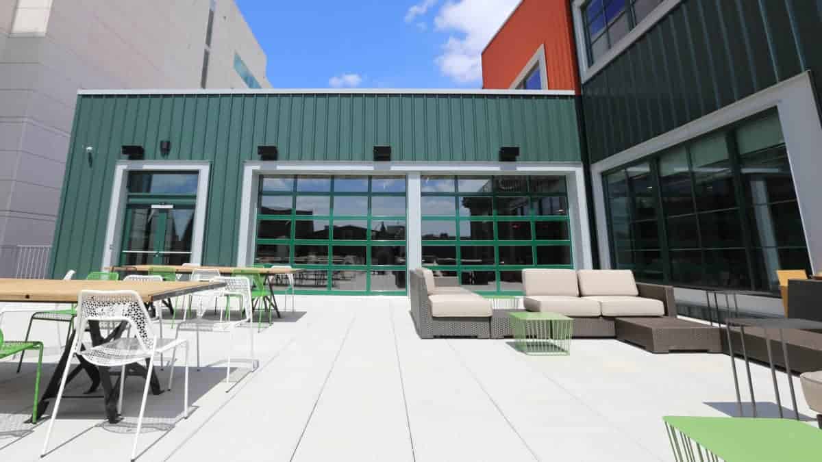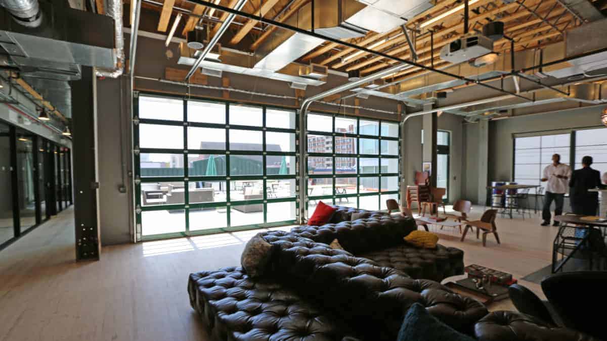 What used to be the Wonder Bread Factory, has now been transformed into WeWork’s vibrant workspace for DC’s entrepreneurs. WeWork chose our commercial 521 series sectional aluminum glass doors paired with our Destiny® 1200 openers. These doors and openers revamped the factory allowing for vibrant light into the workspace, as well as an opening to a beautiful rooftop terrace that sits in the heart of the U Street Corridor. This sleek design is formed from durable corrosion-resistant aluminum and light-filtering glass, engineered for low maintenance and lasting beauty.