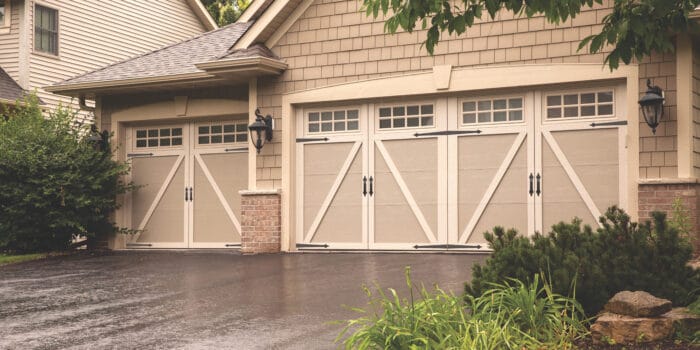 Insulated steel construction, designed to resemble the elegant wood designs of traditional carriage house doors.