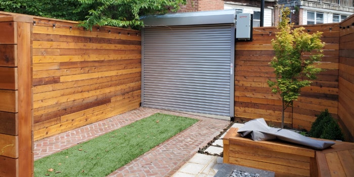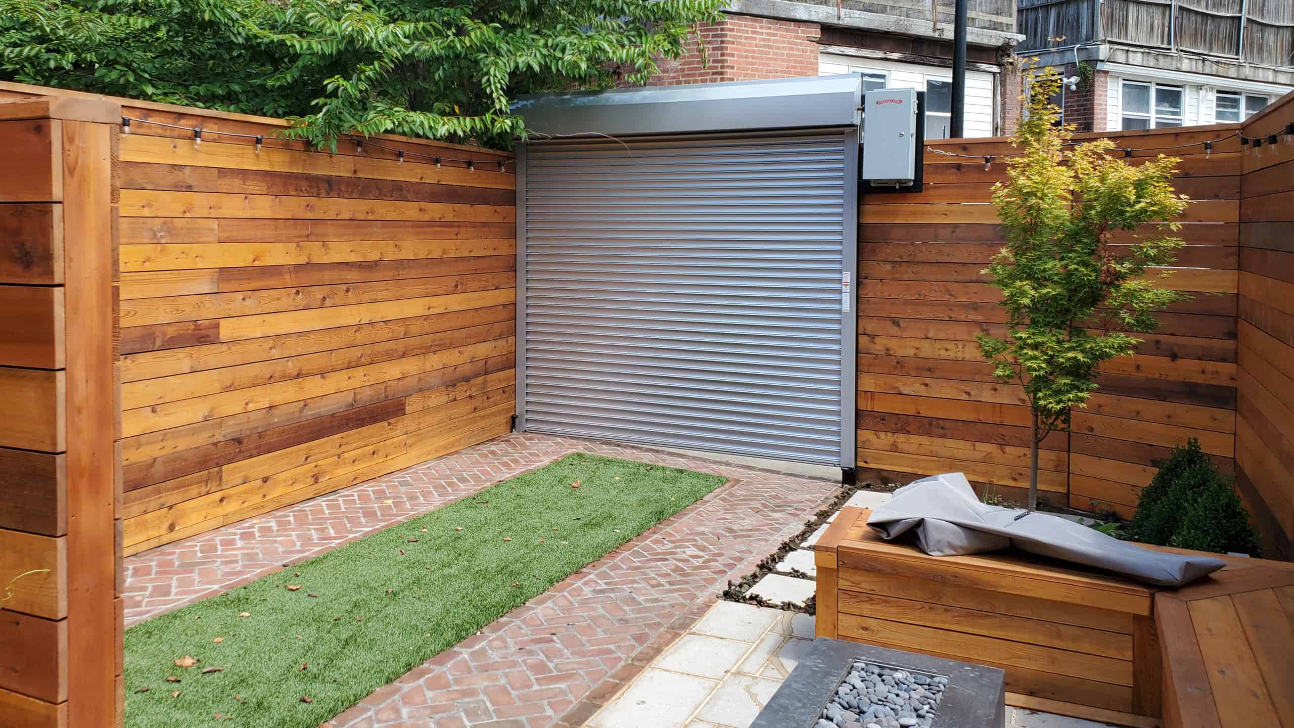 This custom home located in Washington, DC features a beautiful Overhead Door™ Allura Freestanding Alley Door. This door was designed specifically to provide security and restrict unwanted access from the street into driveways in high traffic areas. It is the perfect solution for a consumer looking for a freestanding rollup garage door in Washington, DC. For the homeowners convenience, this door is electrically operated and UL-325 approved for residential use! This door is available in three slat configurations, four standard powder coat finishes, and a complete spectrum of premium finishes. Add curb appeal and improve the security of your property today.